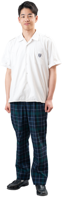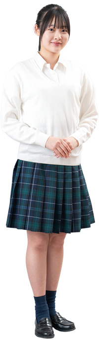 サマーセーターと半袖開襟シャツにネイビーとダークグリーンのチェックのスカート