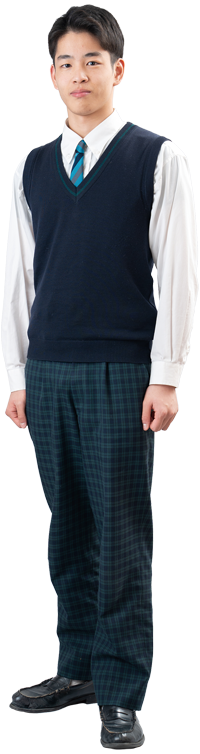 ネイビーのベストとダークグリーンのチェックのスカート